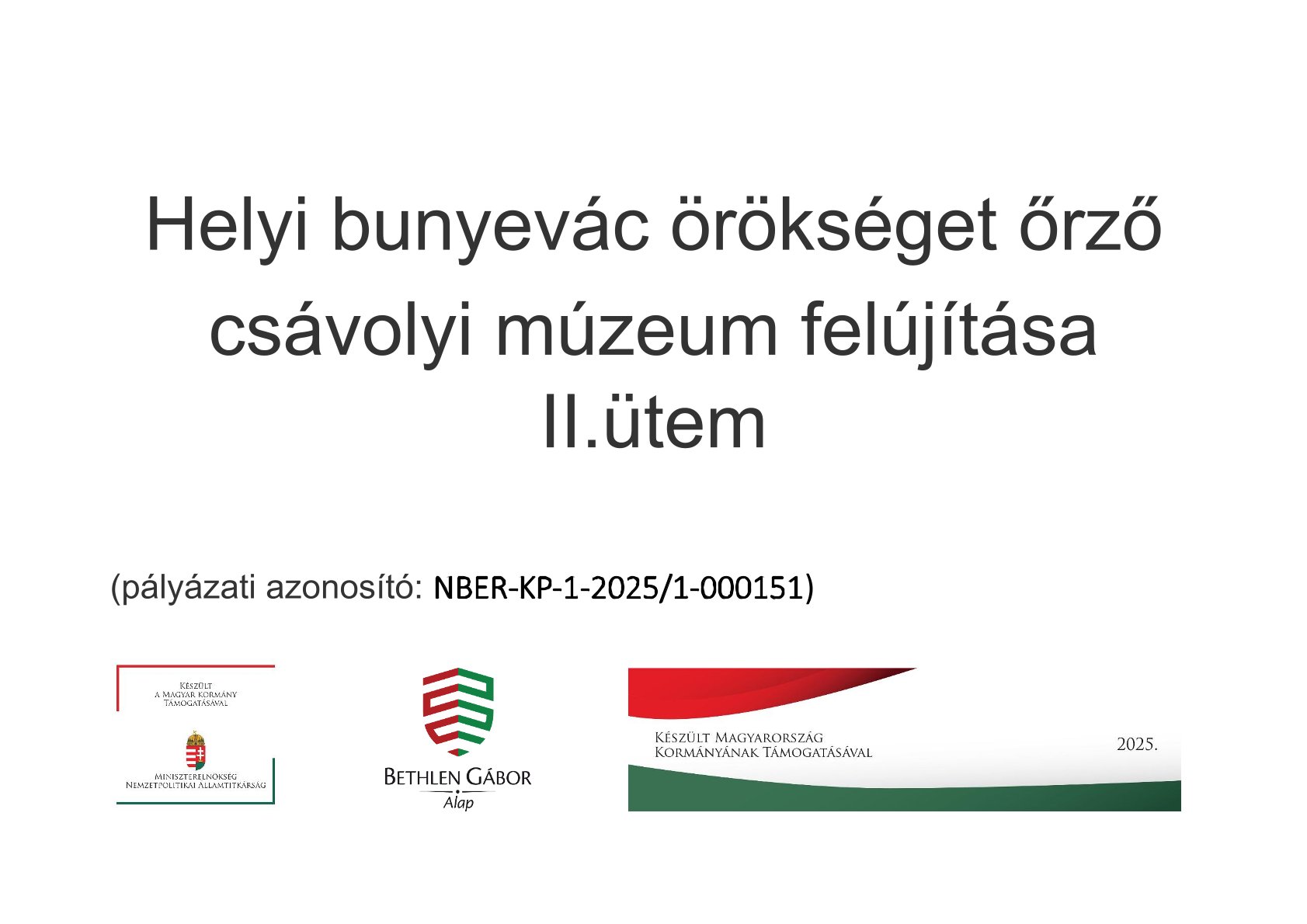 A nemzetiségi önkormányuat a Bethlen Gábor Alapkezelő Zrt. támogatásával már I. ütemben kicserélta a múzeum épületének nyílászáróit, s jelen II. ütemben sor került a födémszigetelésre.